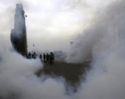 وفي القاهرة أطلقت الشرطة قنابل الغاز المسيل للدموع على المحتجين الذين يرشقونها بالحجارة قرب ميدان التحرير مهد الانتفاضة التي أسقطت مبارك. وقال مصدر أمني إن أحد المارة وعمره 46 عاما قتل بطلق ناري. ولم يعرف من أطلق عليه النار. واستولى المحتجون على عربة مصفحة للشرطة وأحرقوها في ميدان التحرير.