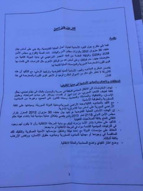 حصري: ورقة المعارضة في عملية التفاوض في جنيف-٣