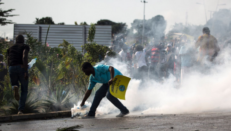 ورغم القنابل المسيلة للدموع، حاول المئات النزول إلى الطريق السريع، وأحرق بعضهم الإطارات، وهتفوا “الانتخابات سرقت” و”جان بينغ رئيسا”. وحلقت مروحيات في الأجواء في حين تصاعد الدخان من عدة أحياء في المدينة.