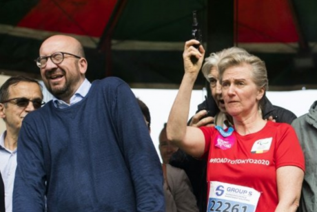 وبدا ميشال متألما في احدى الصور بينما أستريد، الشقيقة الصغرى للملك فيليب، تطلق طلقة البداية قرب أذنه اليسرى تمهيدا لانطلاق سباق جري لمسافة 20 كيلومترا في بروكسل الأحد بمشاركة حوالى 40 ألف شخص.