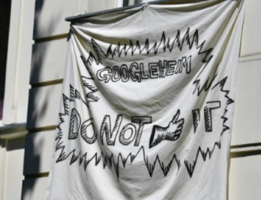 وتنظّم هذه الحملة في أول يوم جمعة من كلّ شهر تظاهرة أمام المكان الذي سيقام عليه مقرّ غوغل، وصارت العبارات التي تطالب غوغل بالرحيل عن المدينة منتشرة على عدد من الجدران في الشوارع.