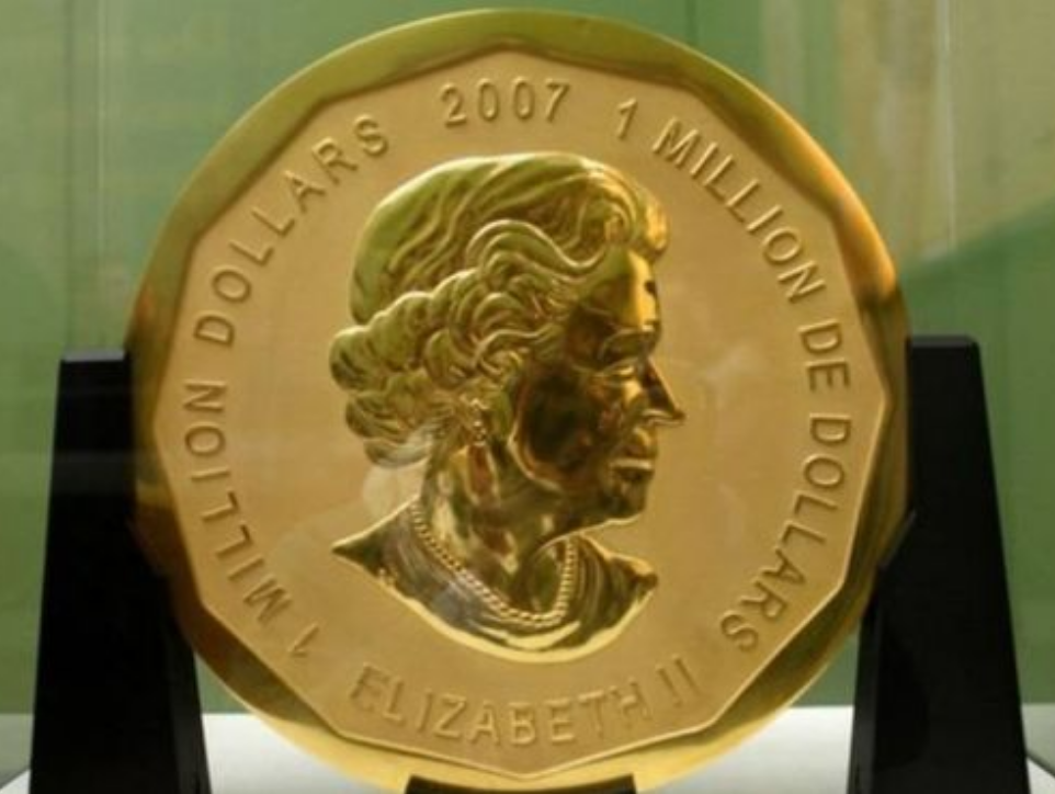 وسرقت قطعة نقدية ذهبية تذكارية كبيرة لورقة شجرة القيقب، تزن نحو 100 كيلوغرام من الذهب الخالص من عيار 24 قيراط، من متحف “بود” في برلين في مارس/أذار 2017.