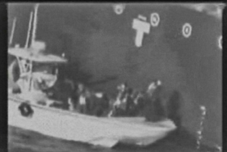 وأظهرت لقطة اخرى، من بعيد إلى حد ما، القارب السريع البالغ طوله 10-15 مترا يعود أدراجه مبتعدا عن الناقلة الضخمة.