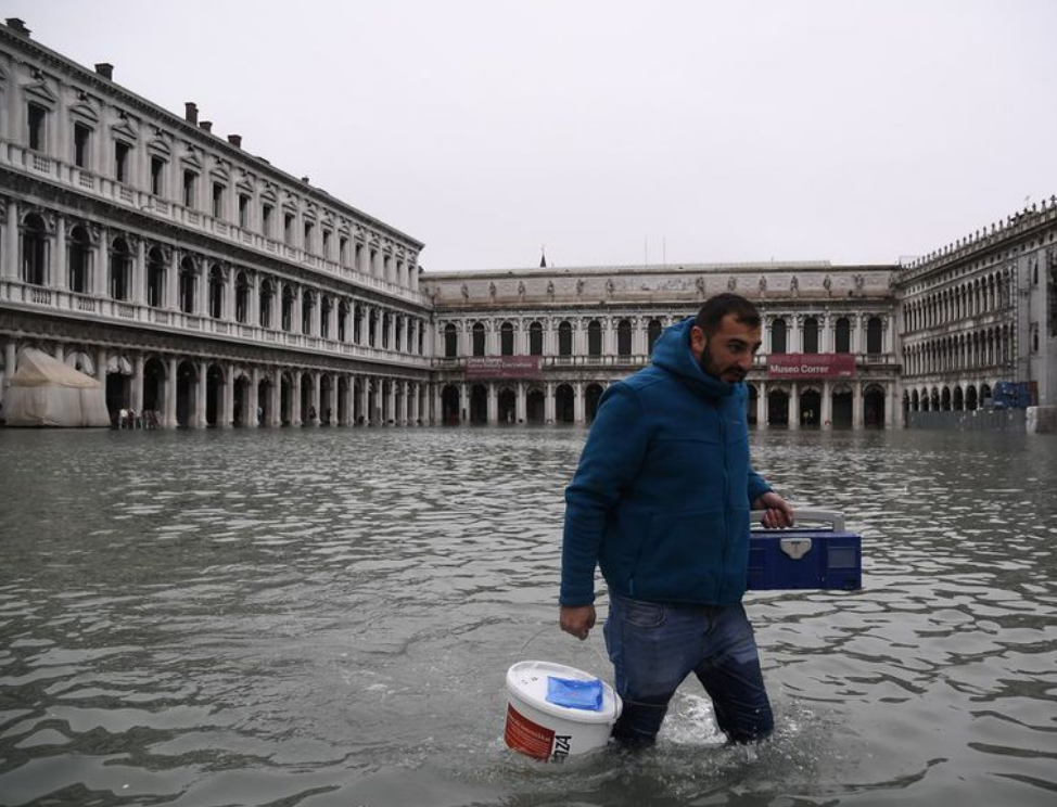 وكانت ساحة سان ماركو الواقعة في أحد الأجزاء الأكثر انخفاضا في المدينة، من الأماكن الأشد تضررا وقد غرق مدخلها.