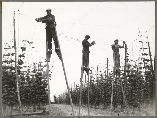 سبل حماية نبتة «الجنجل» في بداية القرن: رفع النبتة وتثبيتها على أشرطة عالية. ويقوم بدلك رجال على عكاز «بهلواني».