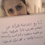 وكتبت نهاد من مصر “انا مع انتفاضة المرأة في العالم العربي لان جسمي ملكي ومش من حقك تتحرش بي”، فيما كتبت فرح جوي من تونس “لا للاغتصاب، لا للعنف”.