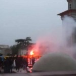 وفي اتصال هاتفي، اكد المتحدث باسم الناشطين من اليمين المتطرف «داميان ريو» (Damien Rio) ان اعضاء مجموعته يتوجهون «بهدوء نحو المخرج بعد التفاوض». إلا أن «برس نت» علمت بأن الشرطة أوقفت ثلاثة من منظمين المسيرة ووجهت لهم مجموعة اتهامات بناء على توجيهات المدعي العام ومنها «الحض على الكراهية، وتدمير أملاك الغير والسرقة» بعد أن تبين أنهم استعملوا مجموعة من سجادات الصلى افرشها على السطح وإشعال النار ببعض ممنلكات الجامع.