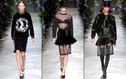 أطياف من فن «الروك» كانت تجوب فوق صالة العرض، ورغم هذا كانت العارضات «فائقات الأناقة»، مع هذه العقود التي يقول تتيشي أنه أطلق عنانها»، كافة الفساتين تلتصق بأجساد منحوتة في قوالب من الجمال كانت تدخل في ثلاثيات متناسقة لتزهو فوق ممر مخملي بأطيافها السوداء مع الكثير من «الموسلين» و«الكريب» الأسود. مع ذلك كانت الفرحة تخرج من عيونهن لتلاقي عيون المتفرجين.‬