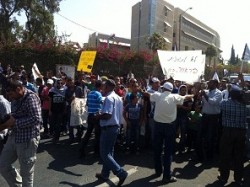 ورفع المتظاهرون لافتات كتب عليها “مخطط برافر لمصادرة 800 دونم من النقب لن يمر وكلنا مع النقب” و”نحن اصحاب الحق النقب فلسطيني” و”برافر قانون تمييز عنصري لن يمر” و”يوم الغضب ضد مشروع برافر، نعم لاسقاط مخطط برافر”.