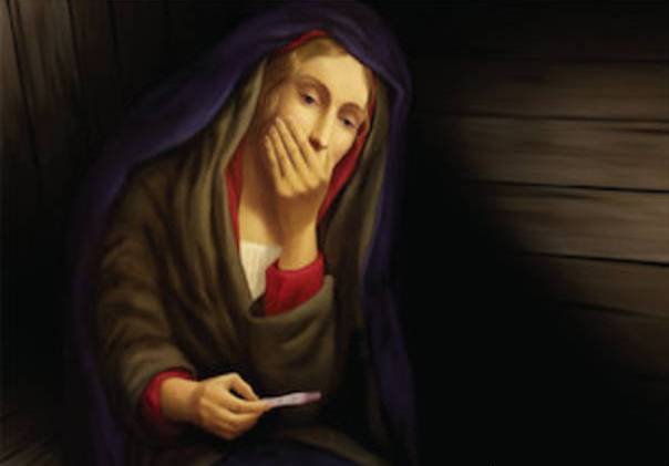 وتولت وكالة اعلانية تصميم الملصق الدعائي الذي عُلق خارج كنيسة القديس ماثيو الانجليكانية الكبيرة في مدينة اوكلاند. ويصور الاعلان مريم العذراء بالاسلوب الكلاسيكي الذي كان شائعا في لوحات عصر النهضة، تحمل بيدها جهاز فحص الحمل المنزلي وتبدو على مجهها علامات الرعب والمفاجأة.