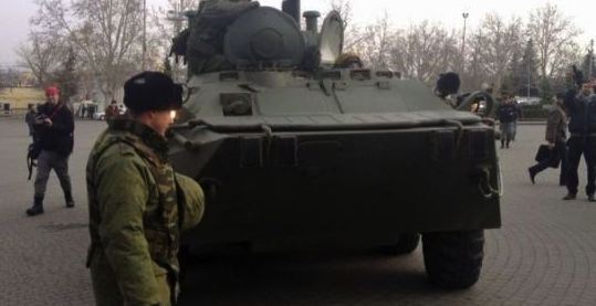 وذكر شهود في أوكرانيا أن عدداً من الدبابات اجتازت الحدود بين روسيا وأوكرانيا ودخلت من دون أن تواجه أي مقاومة من الجنود الأوكرانيين. وقد لاحظ بعض الصحافيون أن هذه الدبابات لا تحمل أي إشارة تدل على جنسيتها.