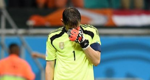 أخفق المنتخب الإسباني حامل اللقب في اليوم الأول من دخوله حلبة مباريات كأس العالم 2014، إذ أنه سجل خسارة مذلة  1-5 أمام هولندا في الجولة الأولى ضمن منافسات المجموعة الثانية (B).