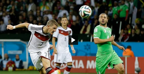 Capture d’écran 2014-07-01 à 08.10.04أخرجت ألمانيا  الجزائر في دور الثماني لبطولة كأس العالم لكرة القدم 2014 ، وتغلبت عليها بهدفين لهدف  في مدينة بورتو أليجري في مباراة امتدت لوقت إضافي. وقد تجلى لعب ألمانيا الجماعي في حين تميز الفريق العربي بلعب بفنون فردية لم تستطع الوصل إلى العرين الأزلماني. وفي أربع مناسبات تصدى حارس المرمى الألماني لسليماني نجم المبارة خارج منطقة الجزاء.