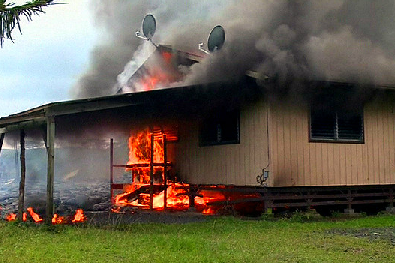 Capture d’écran 2014-11-12 à 07.11.08أحرقت حمم بركان “كيلاواي” في جزر هاواي أول منزل في إحدى الجزر هناك.