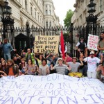 وكانت مجموعة من الناشطين البريطانيين اقامت “قرية الديمقراطية” في أيار/مايو 2010 بجانب مبنى البرلمان للاحتجاج ضد مجموعة متنوعة من القضايا بما في ذلك الحرب في افغانستان.